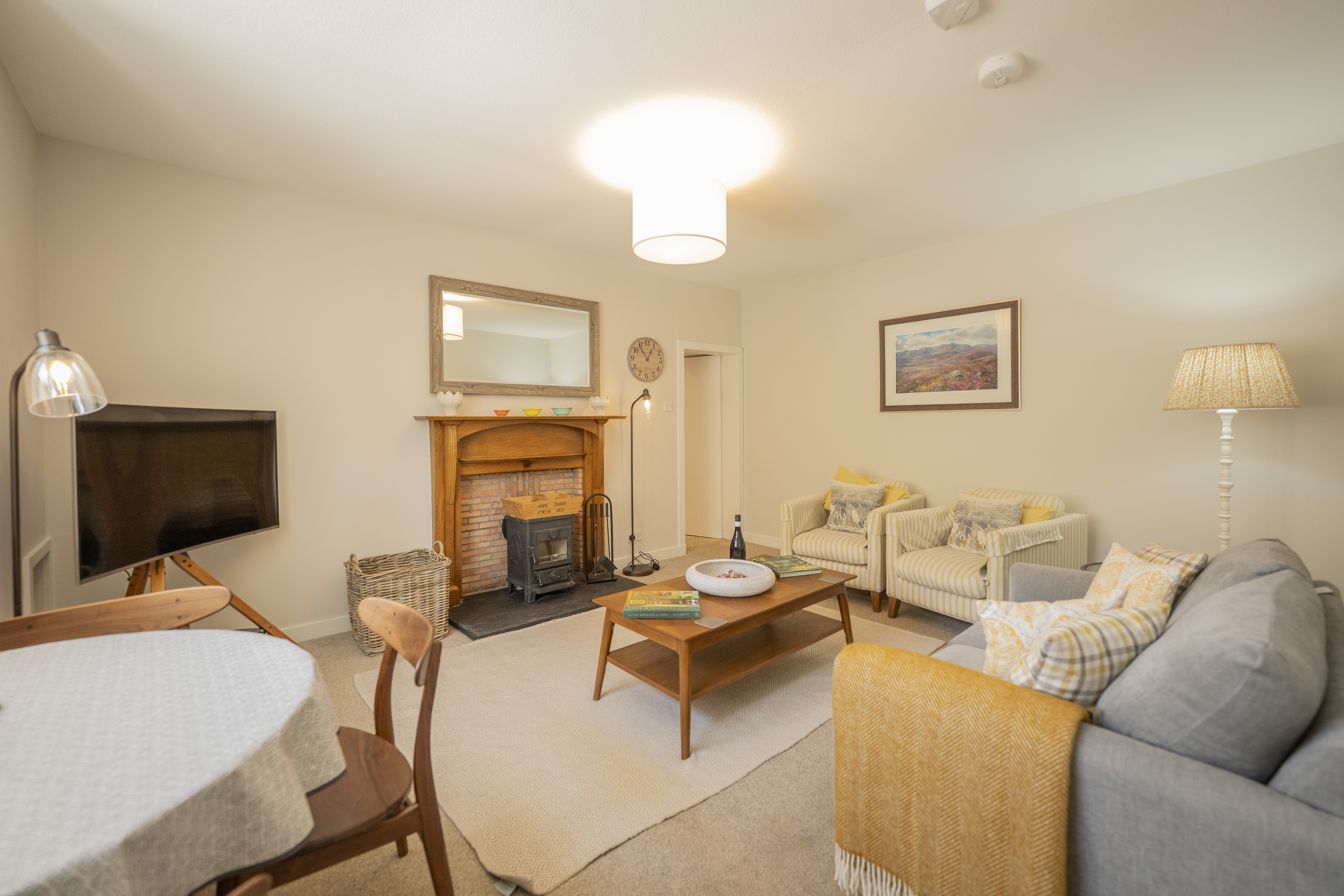 With its stone walls and wood-burning stove, Joiner’s Cottage captures the essence of Highland living. Inside, soft tones and natural textures create a calm, inviting space to relax after a day exploring the estate.