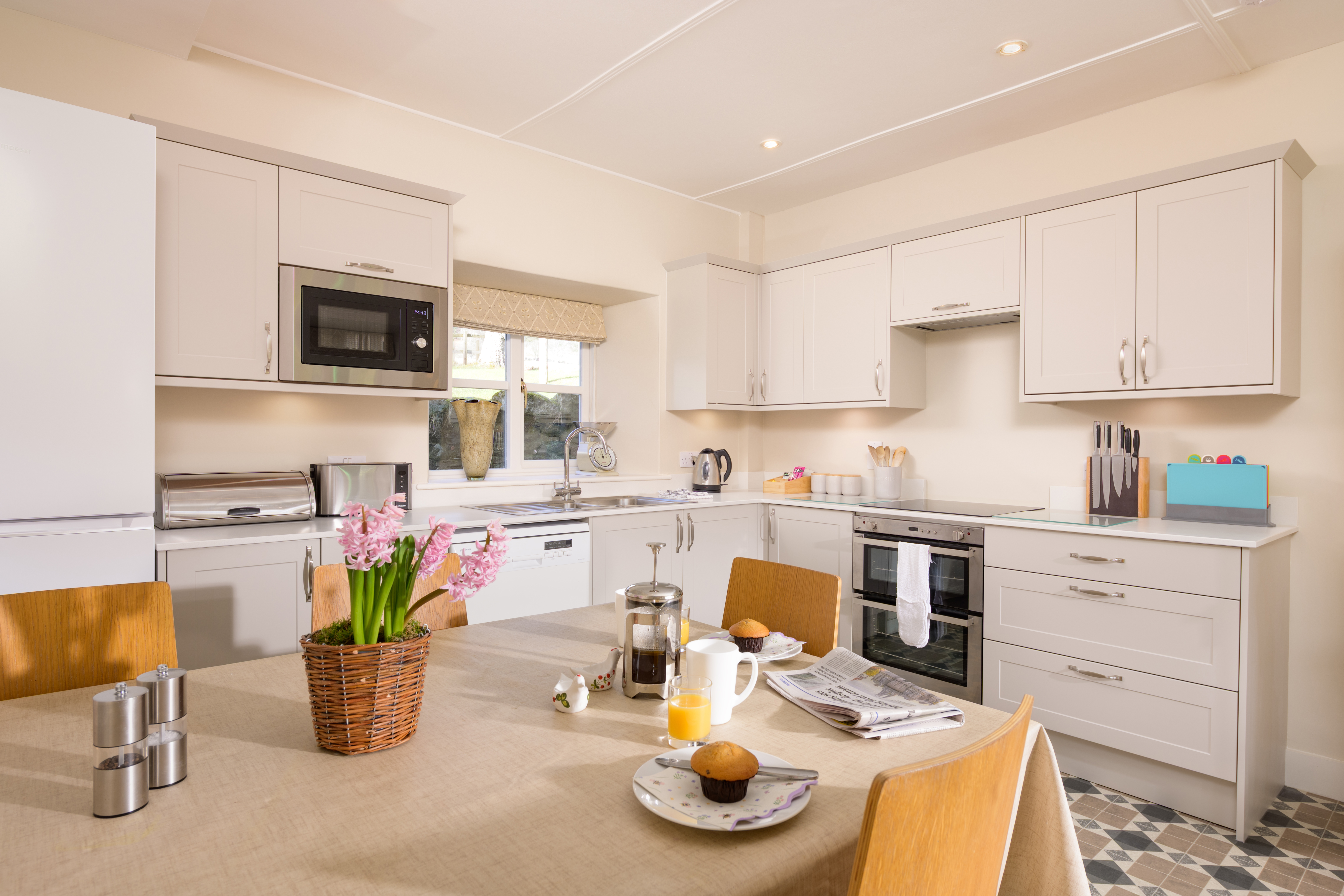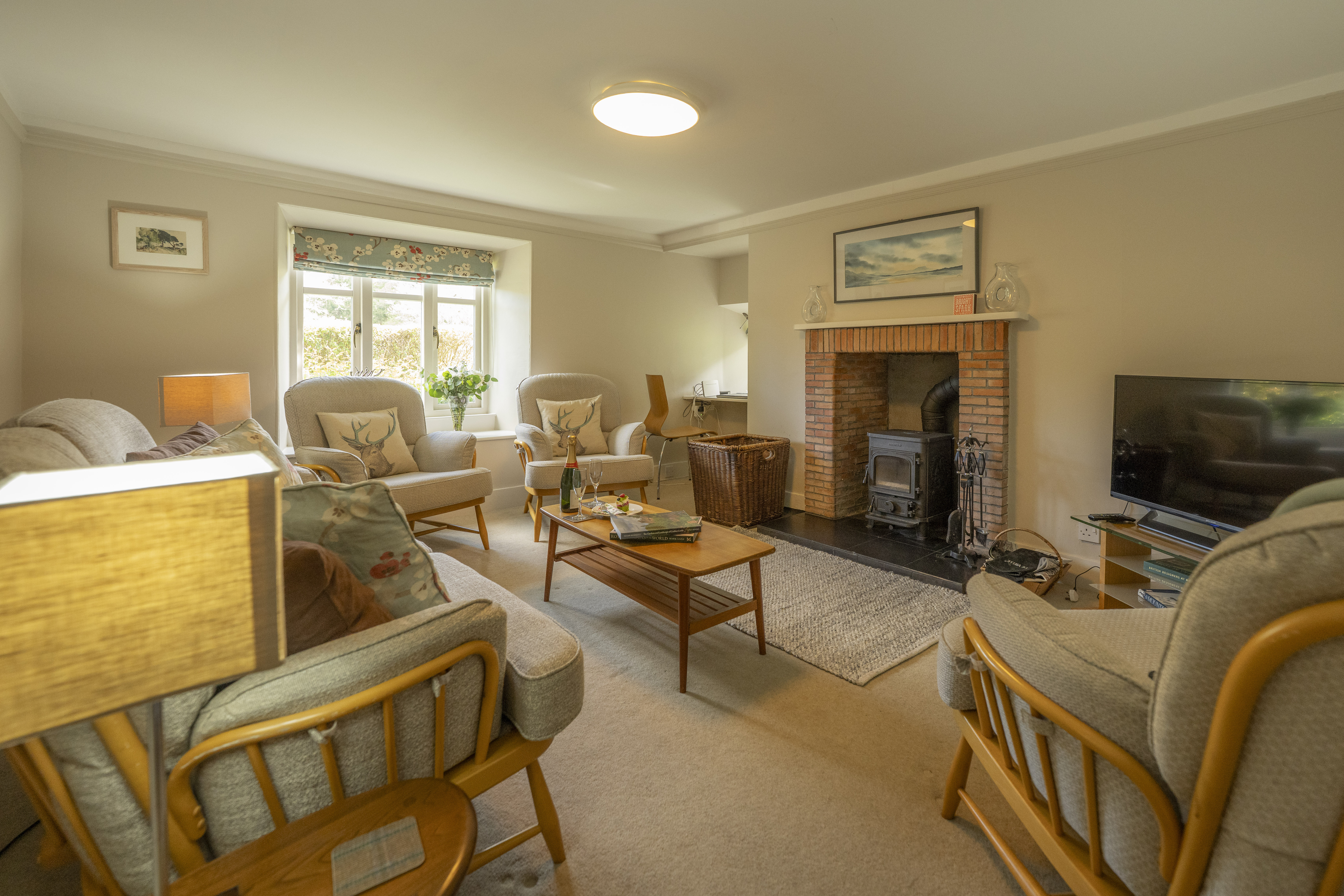 With its low ceilings, wood-panelled walls, stained glass windows and rich British-made fabrics, West Millfield Cottage blends heritage and sustainability beautifully. It’s welcoming, timeless and full of personality — a place that feels like home, only quieter and closer to nature.
